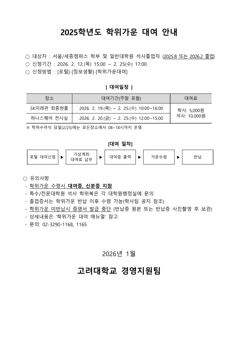◆ (일반대학원) 2025학년도 학위가운 대여 안내 정보보호대학원 2026-01-26 정보보호대학원 일반대학원 정보보안학과 0 880 01.26 17:25 2026.01.26 17:25 2025년도 학위가운 대여 안내.pdf (51.4K) + 31 2026.01.26 17:25 2025학년도 학위가운 대여 매뉴얼.pdf (924.8K) + 15