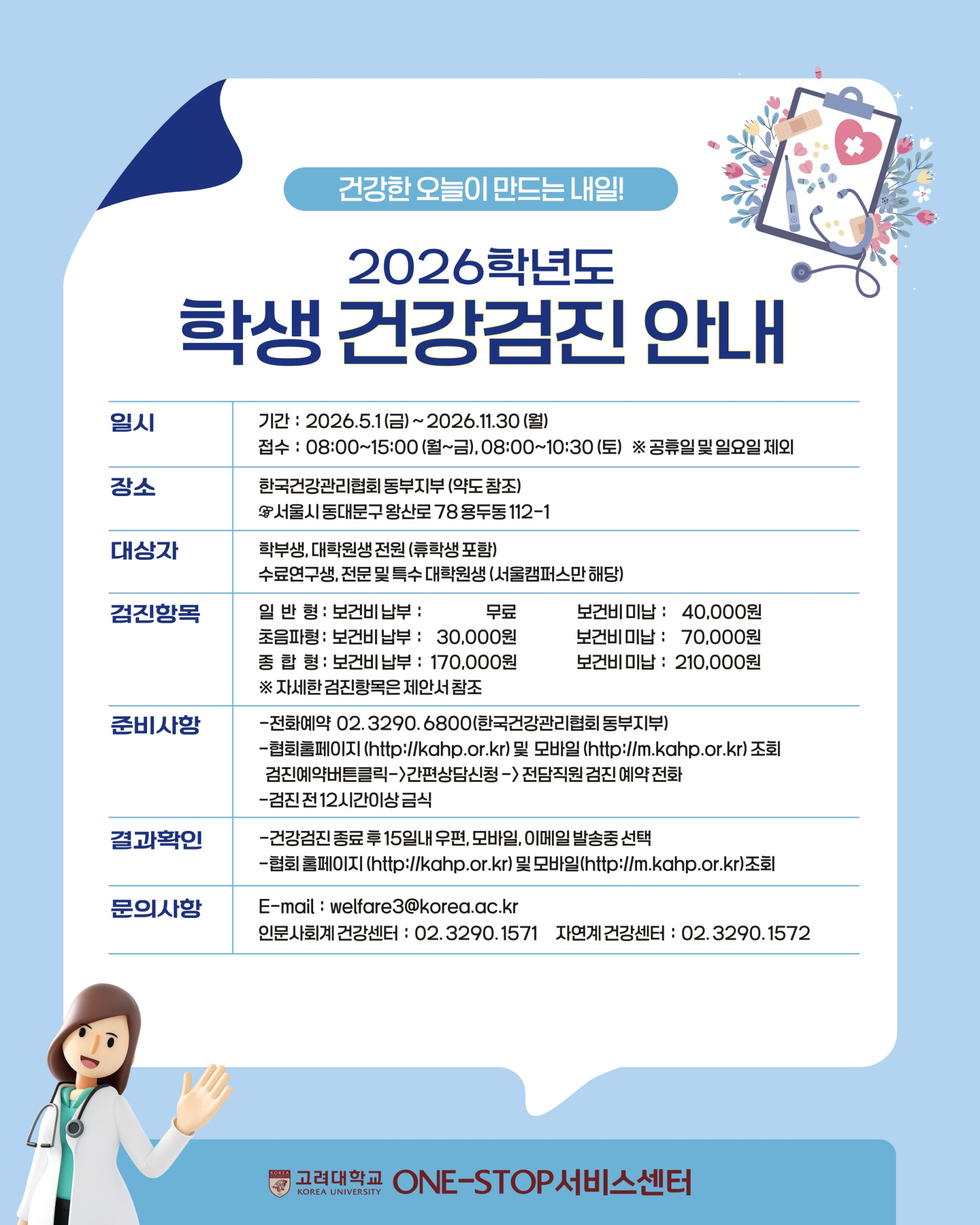 2026학년도 학생 건강검진 안내(학부, 대학원)