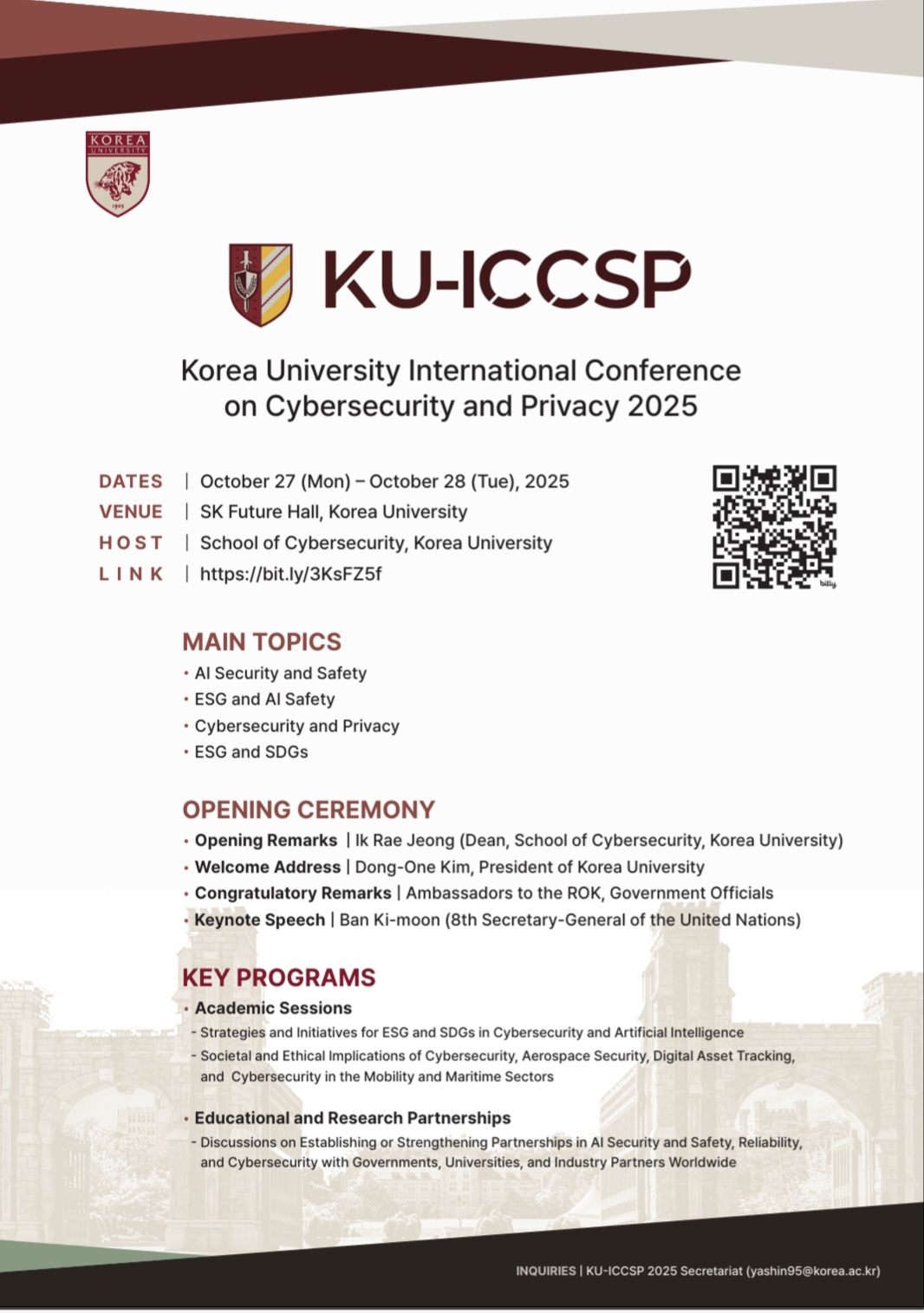 2025년도 고려대학교 정보보호대학원 국제학술대회 (KU-ICCSP 2025)