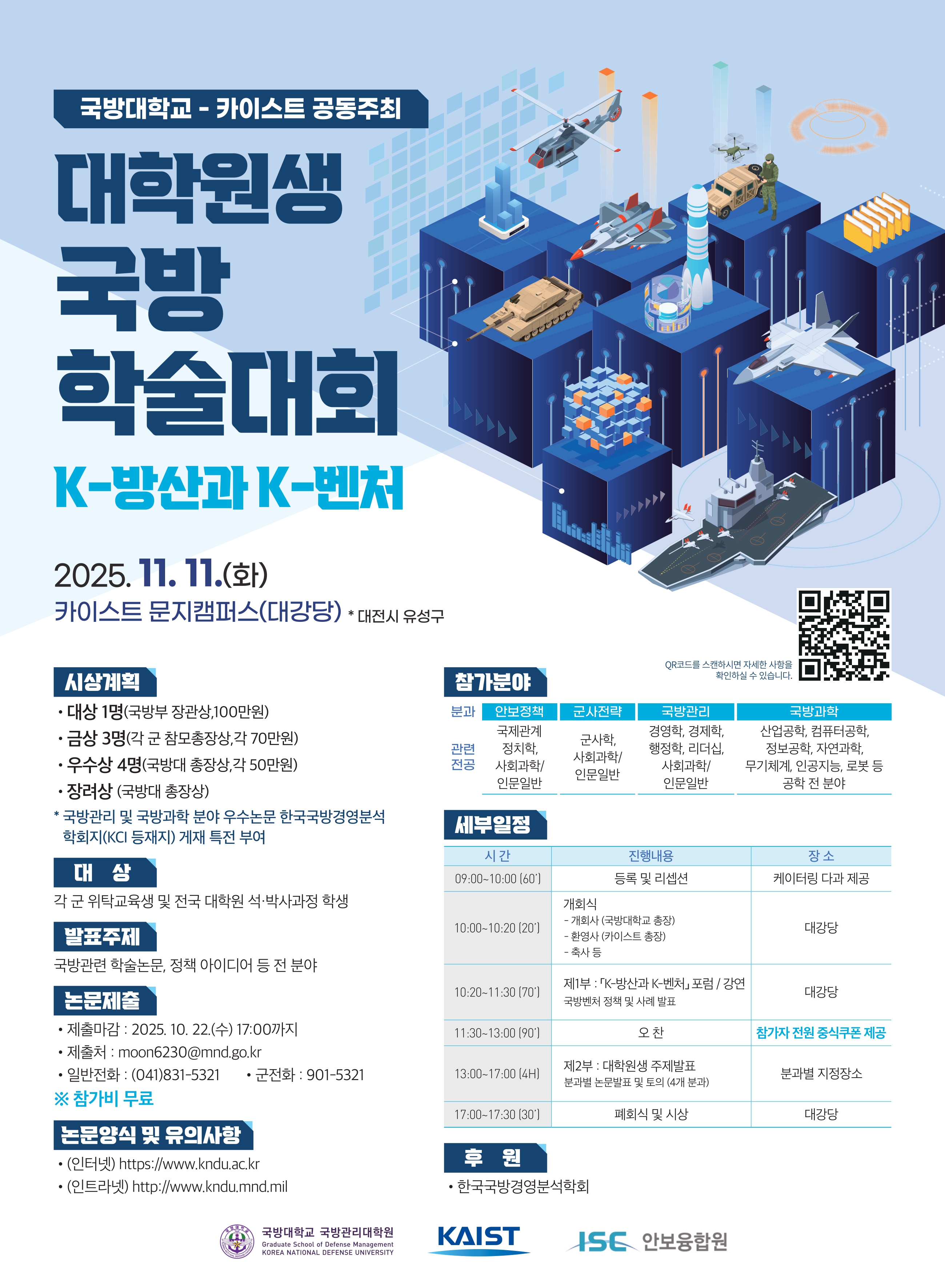 [홍보] 국방대학교-카이스트 공동주최「2025년 대학원생 국방학술대회」 정보보호대학원 2025-09-23 정보보호대학원 홍보 0 189 09.23 13:30 2025.09.23 13:30 논문제출 안내.hwp (61.0K) + 6 2025.09.23 13:30 논문작성 형식.hwp (50.0K) + 1