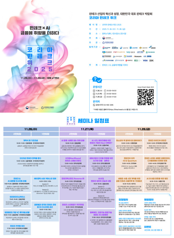 자세한 내용은 포스터와 공식 홈페이지((https://fintechweek.or.kr)를 참고해주시기 바랍니다.